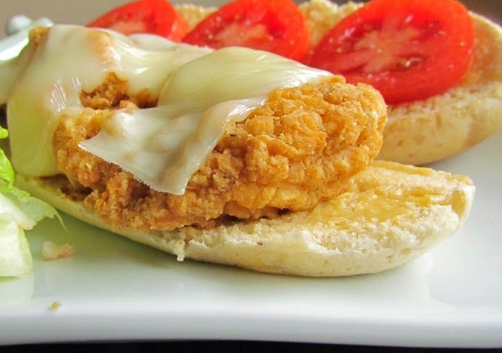 - Place chicken strip on bottom half of hoagie, and top with mozzarella. Briefly broil in the oven until the cheese begins to melt.