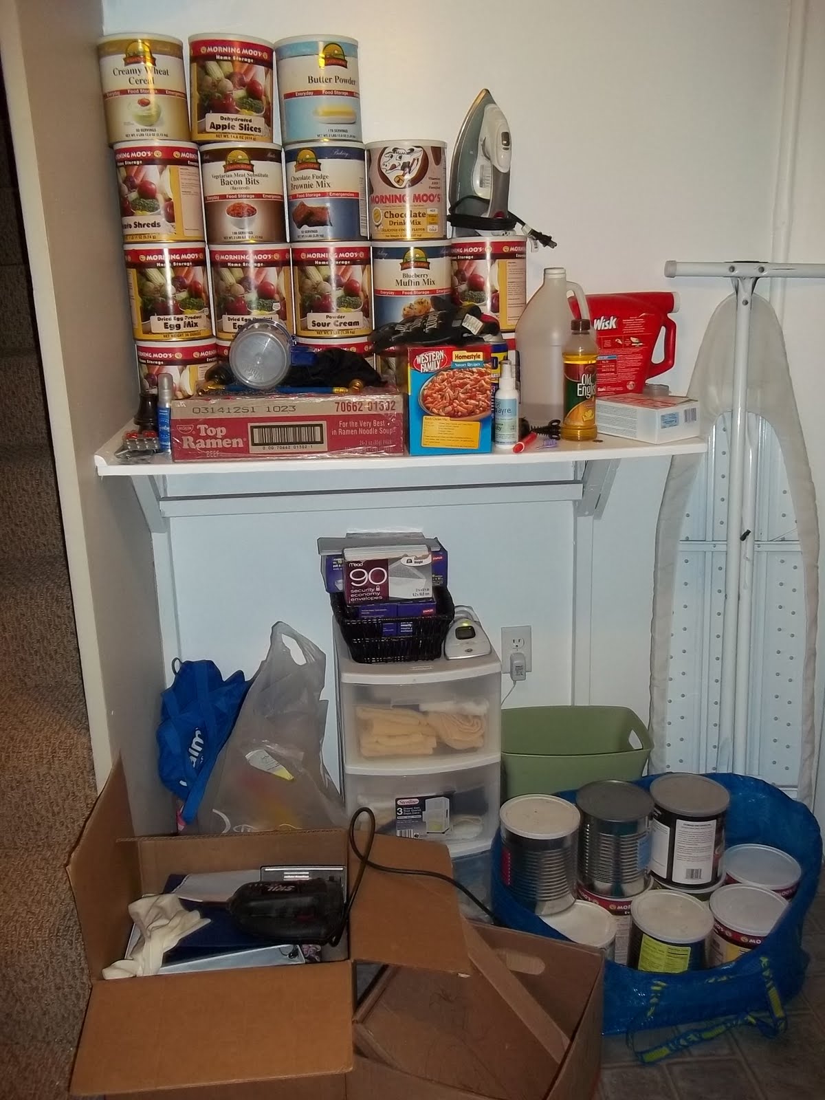 This area is being used for everything right now, not just laundry. Once the cold storage room is finished I will be able to move most of this in there, but for now, I need it organized into this spot.