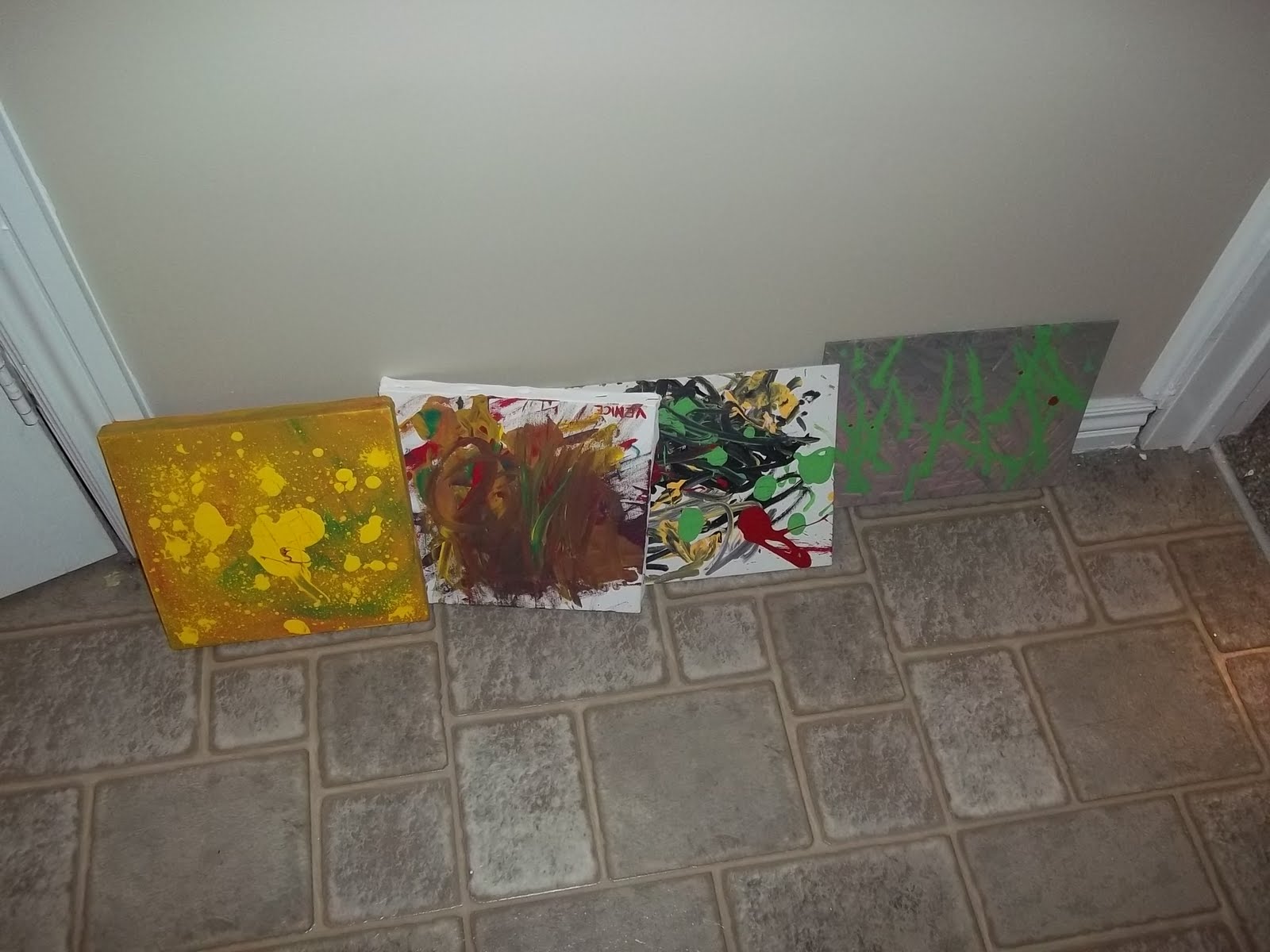 We all painted a piece of canvas to hang on our walls, but that was before Princess R was born. So she needs to paint one (that is going to be a blast!), and then I want to hang them on this wall.