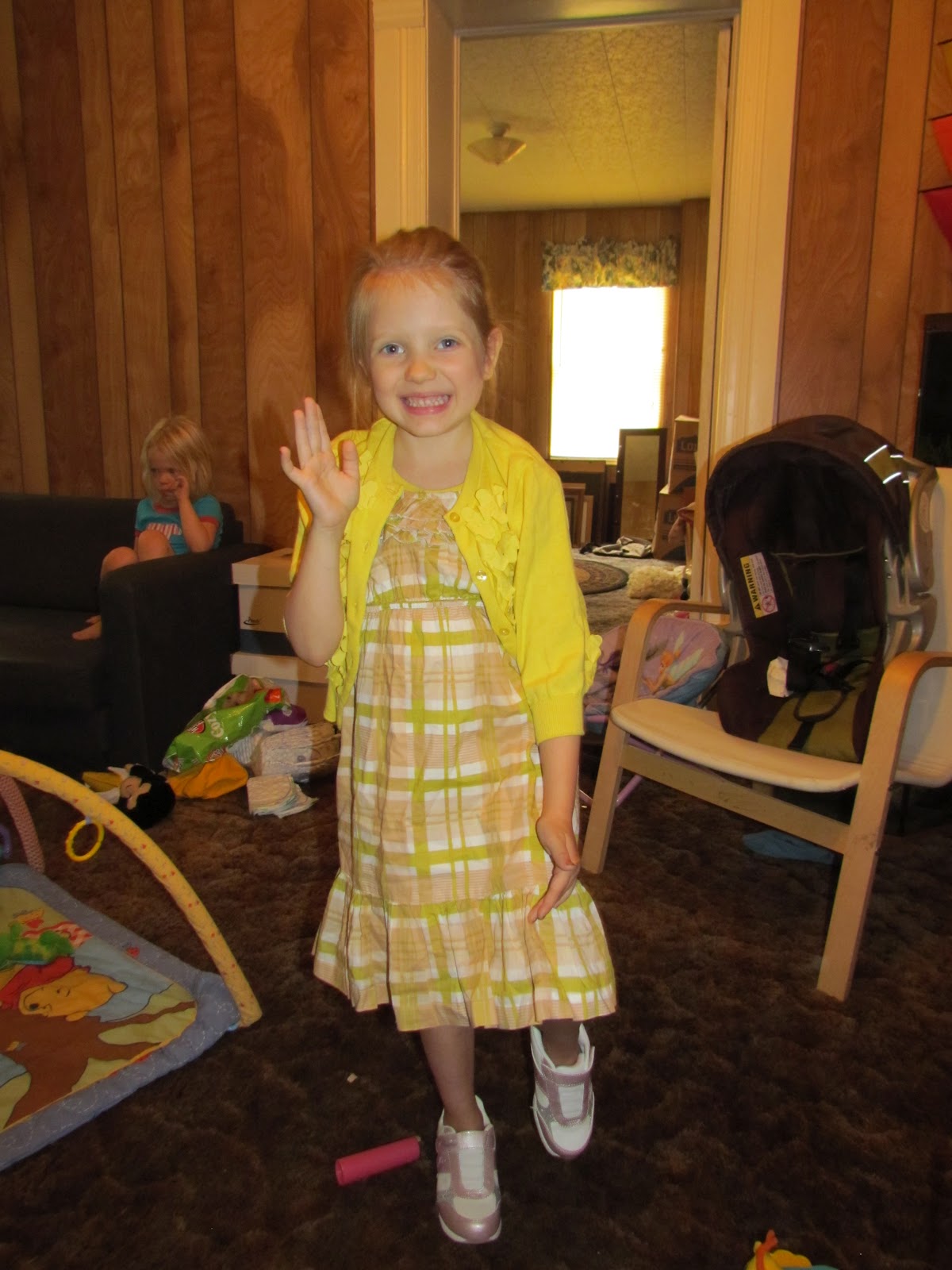 For the longest time I was baffled hearing about mom’s crying when their kids started school. I just didn’t get it. When Princess V went to preschool last year, I was so excited for her! This year is different though. I don’t know why. Maybe my emotions are finally in check. She’s starting Kindergarten, and I do kind of want to cry. My baby is growing up and going to school. She’s going to make lots of friends, and learn so much. Before I know it, she’ll want to spend more time with her friends than with me and her sisters. She’ll want to do her own hair, and pick out her own clothes (ok, she already does that, but I still have a little say). Today she has a Kindergarten test. Every other grade has begun school, but they test the kindergarteners individually the first couple days, and won’t actually start class until next week. Today is Princess V’s appointment. She has been so excited, and I’ve been so nervous. I think she’s right on track, but I know we could have focused more on numbers over the summer. Isn’t she cute though? Grandma P took her school clothes shopping while they were visiting. I’ve kept all the clothes in a bag waiting for this day. So first thing this morning she and I pulled out the school clothes. Isn’t she a doll?