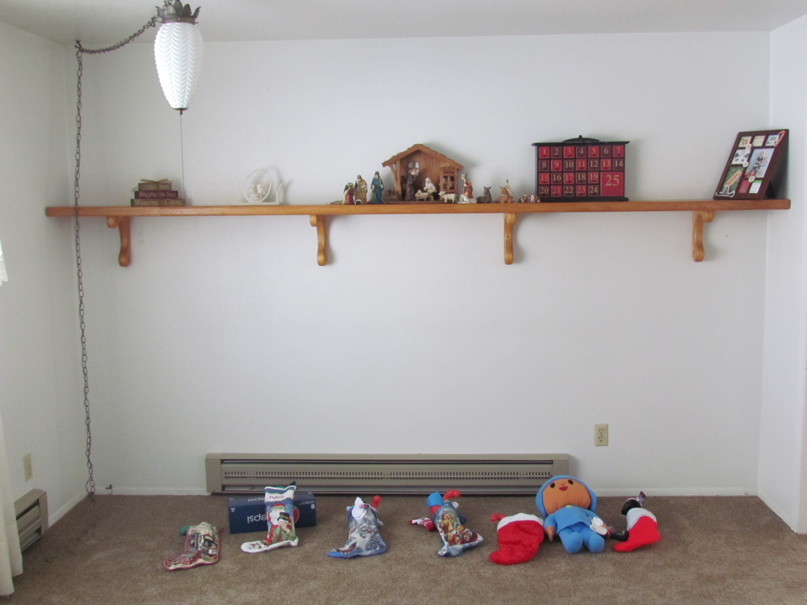 Above the shelf I would like to add some recessed can lighting as well, to spotlight any decorating I do or pictures we may hang there.