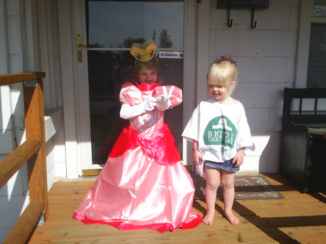 We got to pick the costume for review, so Princess V and Princess C and I sat down and browsed their huge (and I mean HUGE!) costume collection. It was really hard deciding, but when we came across the Girls Deluxe Super Mario Princess Peach Costume, we knew we had a winner! It was decided and within a week we reveived our costume. We opened it right away and within seconds it was on Princess V and it was not coming off anytime soon.