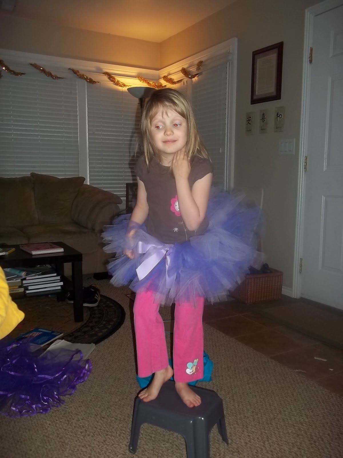 Of course the camera came out, and she had to “show my moves!” Despite being tossed around the house, worn by 3 Princesses, and never put away, this Little Miss Princess Tutu, still looks brand new to me! Thanks April, for letting my Princesses enjoy a quality made tutu!
