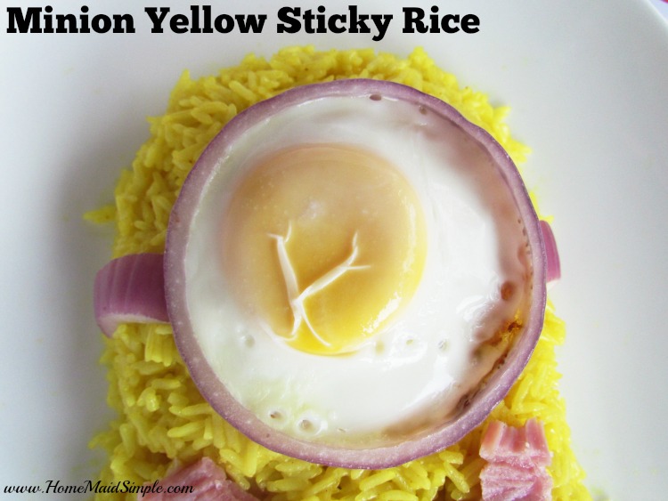What a fun idea to make the sticky rice like that – I LOVE the egg as a minion goggle. So clever! #client
