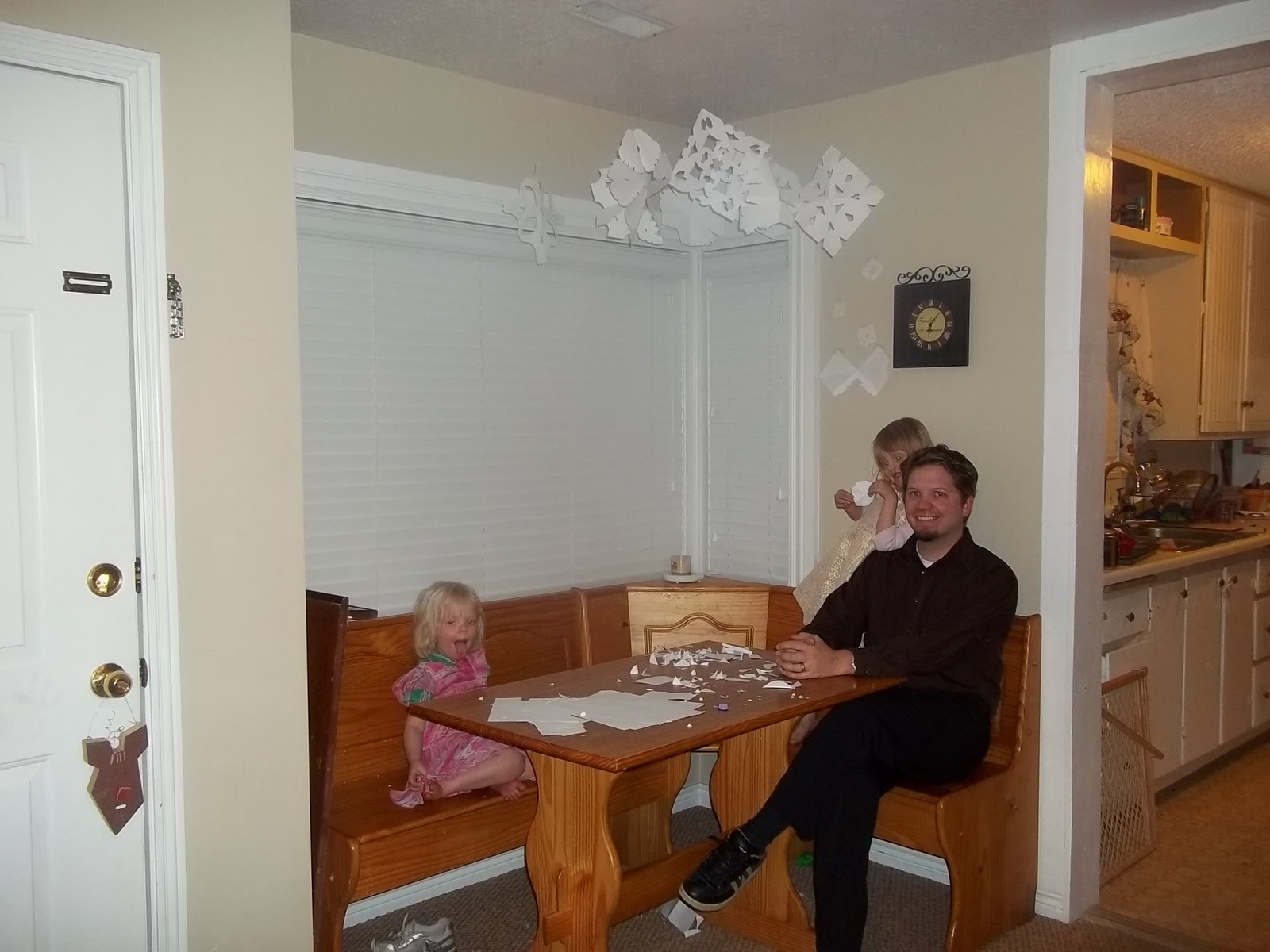 We changed it up a bit, and made paper snowflakes instead. It was a lot of fun, good scissor skills for the Princesses, and a wonderful activity to spend family time together.