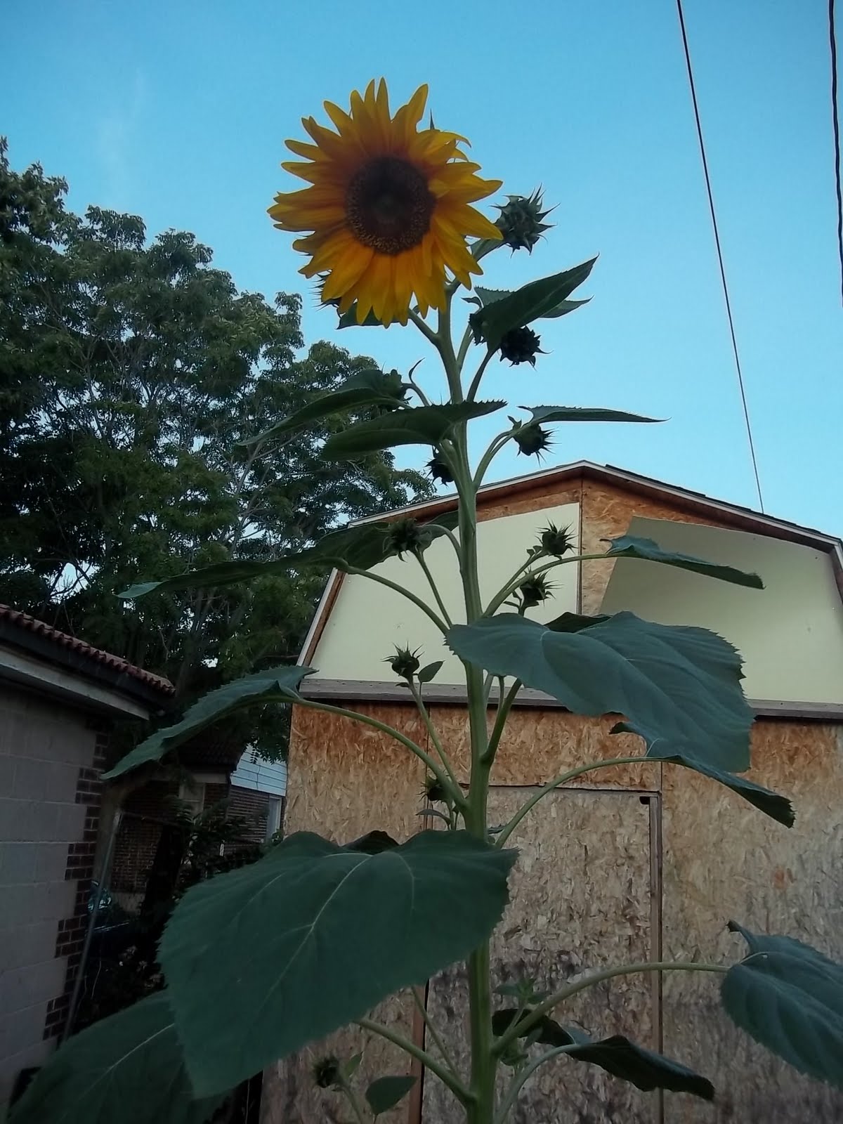 Remember the Okra I planted? I was so excited because out of about 50 seeds, I only got one to grow. Well, turns out I got none. As you can see it is most definitely not Okra. The question now begs, where did this Sunflower come from?